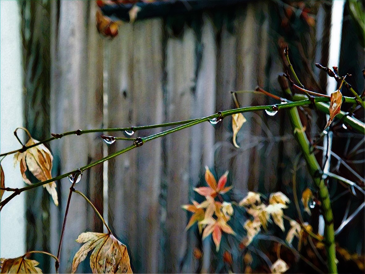 Well… I have been at this a good part of the day. It’s raining again and the fireplace is ablaze. This is kind of crazy stuff. Just having some fun with the water and some artsy effects.