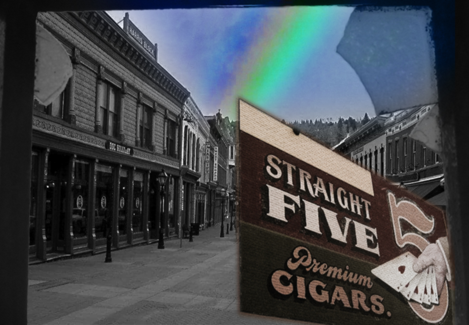 I’m trying to figure out ways to create unique collages. The main image (the casino town) and the cigar sign (taken off the side of a building) were shot in Central City, Colorado- which I visited once while I lived in the area. I love signs painted on brick!