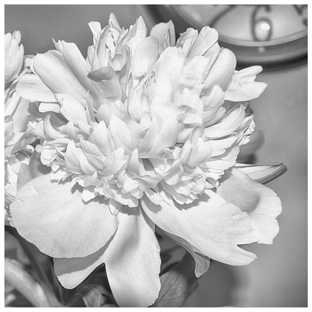 I’ve been wanting to share another peony image but I wasn’t in the mood for pink tonight. I think it may have lost some of it’s contrast and luster in the black and white conversion, but it is oh so appropriate for a time out; not too loud or vibrant… but beautiful and unassuming. That’s how I see it anyway. I had it in mind to zoom in and crop out the clock. And then I thought, “oh wait, how perfect is that?!” A peek-a-boo signal that it’s time to take a time out.