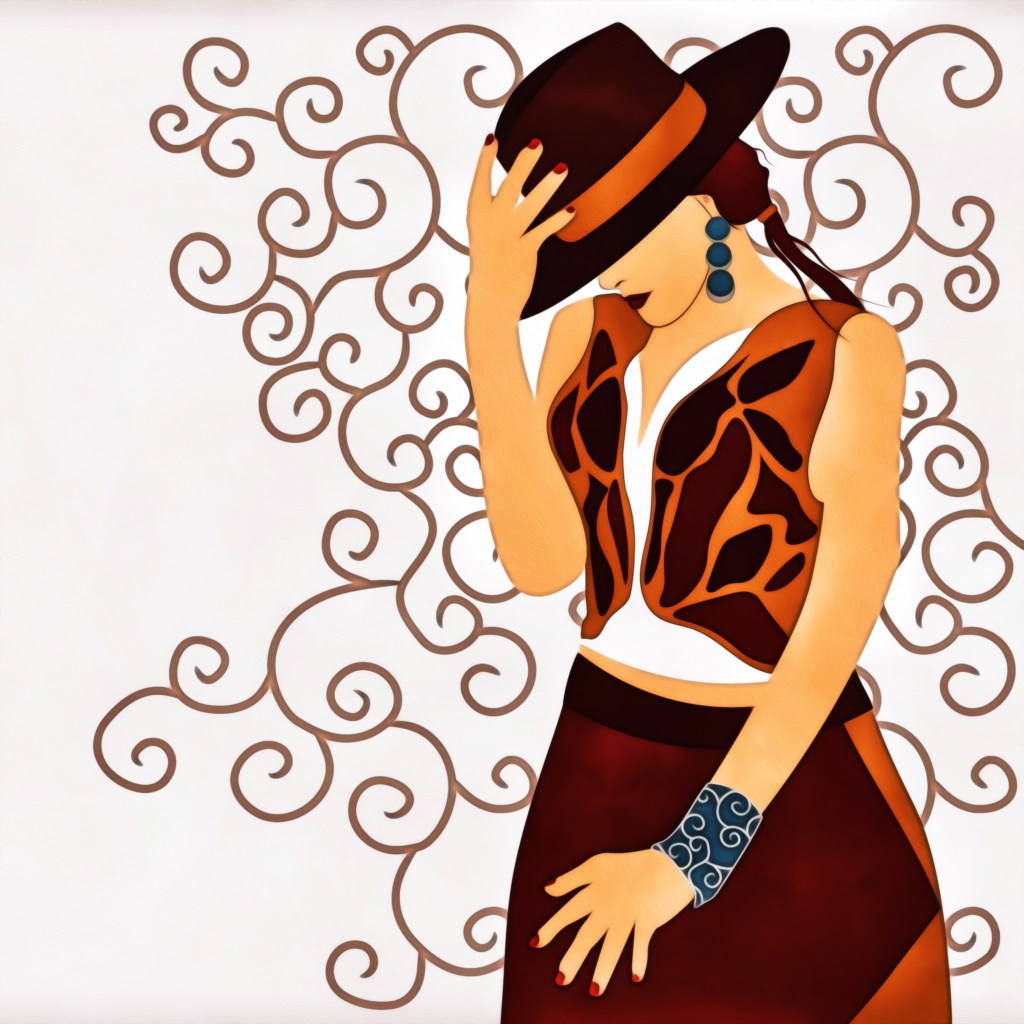 I am happy with the girl (what do you think of her turquoise jewelry?) – but I fear my attempts to create something that resembled lace fell short. I had to go with something that looks a little more like a doily. 🙂